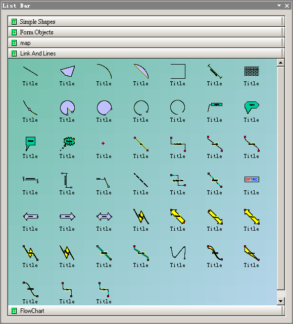 vector drawing shapes, flowchart link shapes, gauge shapes, and other