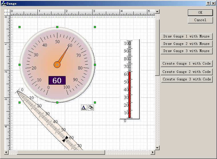 Gauge sample, this sample demos how to use UCCDraw to create gauge