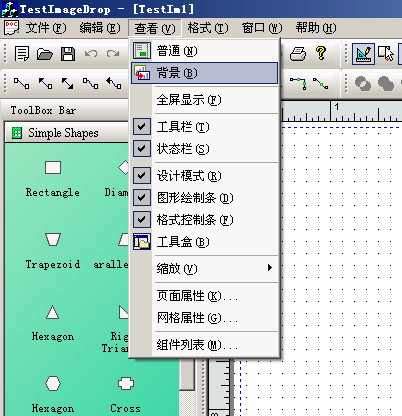 为了能够更高效的方便用户完成图形的组织和编辑,E-Form++可视化图形组件库将视图设定为2种编辑模式:背景编辑模式(母板编辑模式)和普通编辑模式,通过下面的菜单切换: