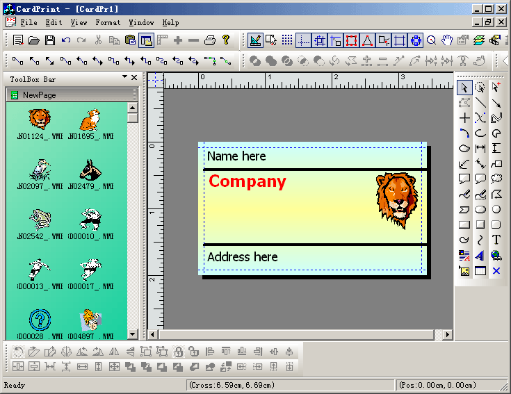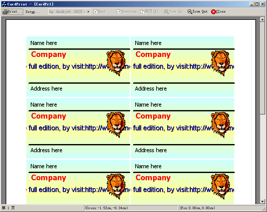 4、打印:系统能够自动根据您当前的设计页面大小,以及当前打印机的设定,来打印各种标签、名片、票据等等。