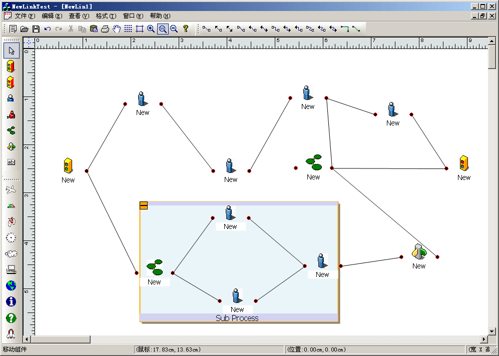 E-Form++可视化图形组件库最新企业版本全面内置工作流程图解决方案,其中包括直接单击绘制流程线、连续绘制流程图形、 流程图的各种查询、多层次的流程子图的制作和编辑,自定义的属性设计和编辑等等。如下图: