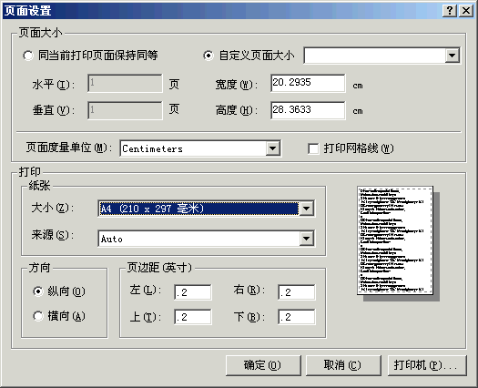 1、画布大小的任意设定,缺省情况下,您可以选择将画布设定为固定的打印页面大小,例如,将画布设定为水平2个打印页面、垂直方向3个打印页面大小,此种设定下,当打印页页面设置变化的时候,系统会自动的保持此关系。另外一种方式是设定画布大小为水平多大、垂直多大,这种情况下,系统会自动根据当前画布的大小和当前打印机页面的设定来切分,以保证能够正确地输出此画布上的所有内容。如下图: