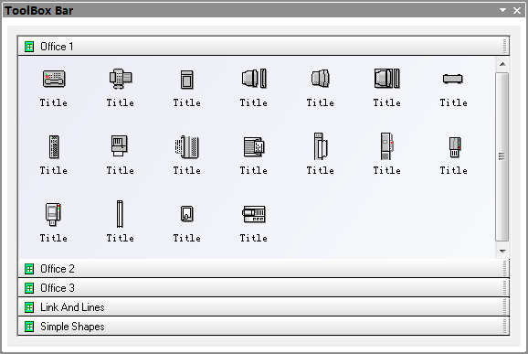 ConceptDraw等的元件导入到左边的工具盒中。同时您也可以直接使用ShapeDesigner提供的专业绘图工具来设计各种元件。