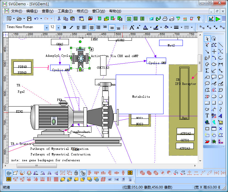 SVG导出功能能够自动的将任何E-Form++画布中放置的图形导出到指定的svg文件中去,导出的svg文件完全能够被其他支持svg的软件所打开。同时支持导出包括简体中文在内的多字节语言。下图是一个导出的svg格式: