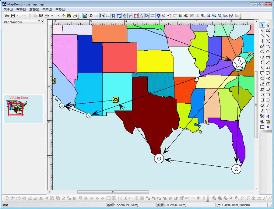 通过导入svg或者shapedesigner复合图形设计程序,可以快速制作各种地图图形。
