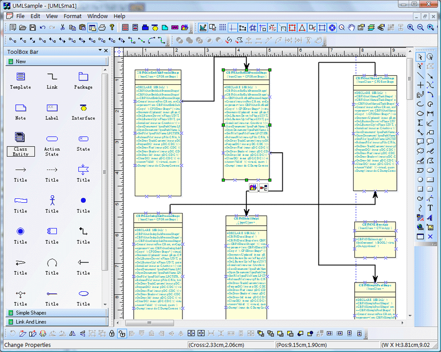 UML 绘图和布局之间关系的显示都可以轻松创建。
