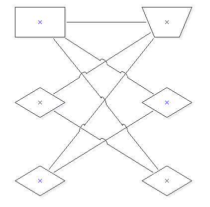 4. 全面改进了连接线穿越功能, 现在可在除Bezier曲线外的任何连接线之间建立穿越关系. 如下图:
