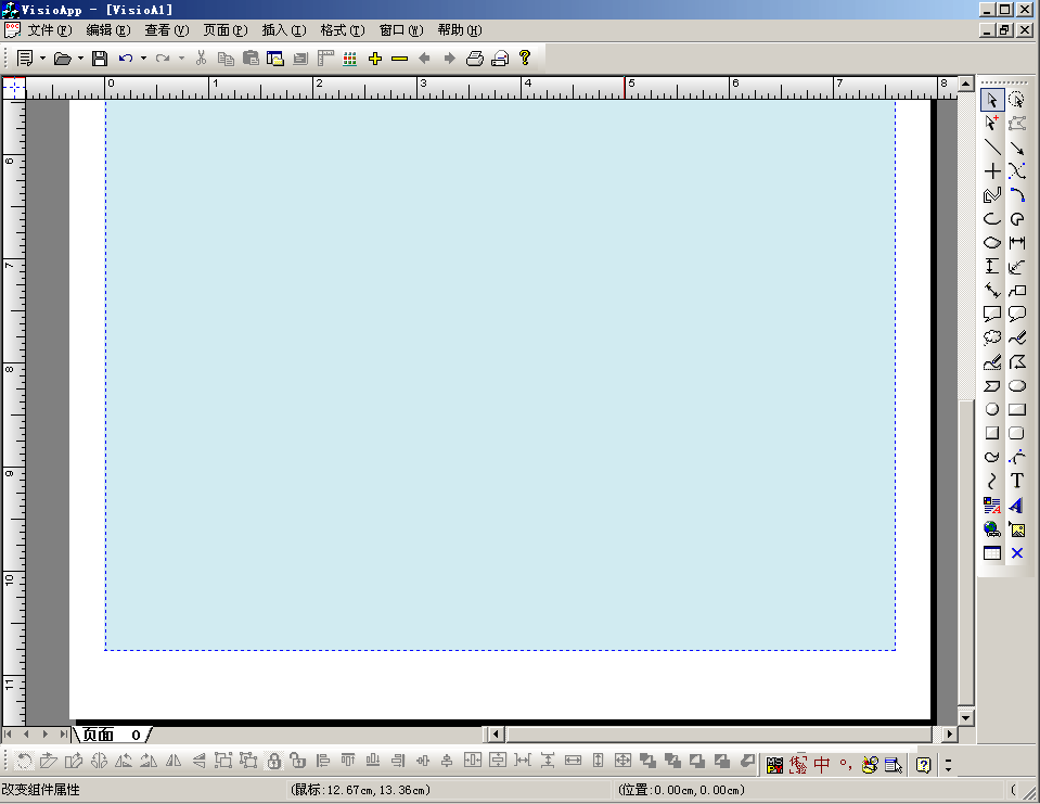 改进了画布背景的绘制,如果您将画布大小设定为固定的一个打印页大小,则画布会自动的显示当前画布在整个打印纸上的状况,如下图: