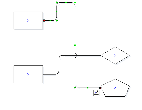 11、圆弧拐角连接线,并支持类似于Visio 2007的折断和自动合并折叠重合功能,如下图: