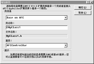 在AppBuilder中,您可以同时从MFC或者AFC继承新的类,我们专门为您设计了类继承程序,如下图: