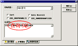 在AppBuilder中,您知需要进行简单的拖拉或者属性设置就可以完成对代码的编写,比如您需要让您的组合框在初始的时候即自动的显示某个查询的内容,您只需要进行如下的设置即可: