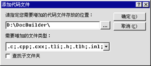 2 在出现的对话框中选择您的代码存放的路径,以及需要增加的文件类型和是否包含子文件夹中的内容: