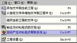 选择<工程>选单的<自动产生HTML格式帮助系统>: