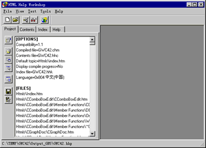 在Microsoft HTML Help Workshop中您只需要按下 按钮,系统就可以为您产生帮助系统,最后按 可以显示此帮助系统,除此之外,DocBuilder也在输出列表中显示出了当前的帮助系统文件,如下图: