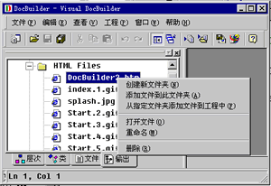 作为一个专业的帮助系统自动产生系统,DocBuilder提供了对所有的html格式的网页的管理.如删除网页,新增网页,重命名网页等操作,具体的操作如下: