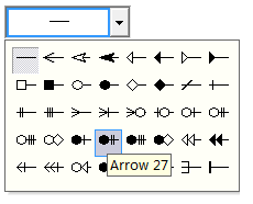Form++提供了大量的各式各样的箭头来满足您在开发各类应用程序的要求,任何使用Form++开发的应用程序均可以自由使用这些代码。一般情况下如果要改变当前对象的箭头,您只需要通过我们提供给您的一个箭头设置对话框来进行(如下图).除此之外,Form++还提供了一个非常方便的接口来协助您添加自己的箭头类。