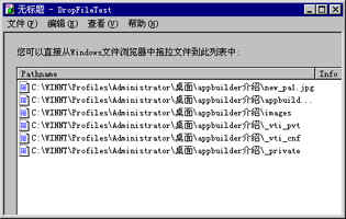 此范例向您显示了如何在AppBuilder中通过简单的编程来实现一个复杂的文件拖放功能的程序,您可以试一试直接从Windows的文件管理器中拖入文件的操作